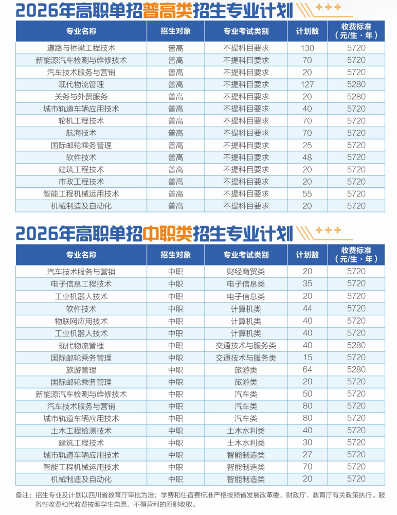 四川交通职业技术学院2026年单独考试招生专业及计划